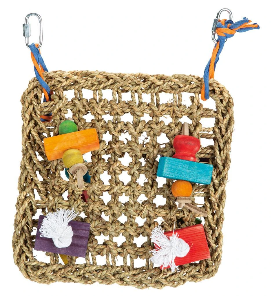 Met het Beeztees Vogelspeelgoed Joan fleur je de vogelkooi helemaal op. Dit speeltje is gemaakt van zeegras en bevat verschillende gekleurde houten blokjes en kralen. Jouw vogel zal het leuk vinden om met de blokjes en kralen te spelen. Eenvoudig op te hangen in de kooi door middel van haakjes.
